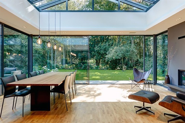 Pontio’r bwlch rhwng orendy a stafell wydr, mae SkyRoom yn edrych fel orendy gyda phroffil alwminiwm syml, modern.